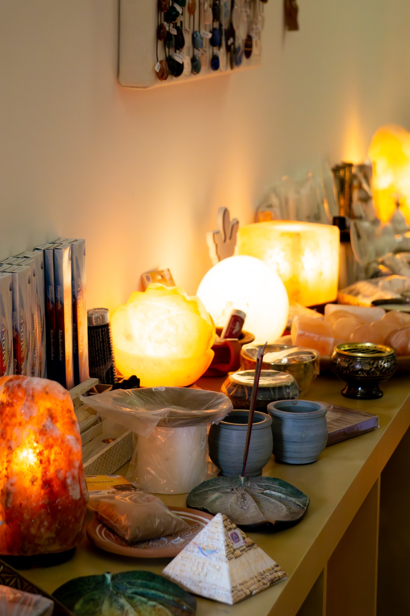 Salzlampen in verschiedenen Designs erhältlich. Preise auf Anfrage. Jede Lampe ist ein Unikat.